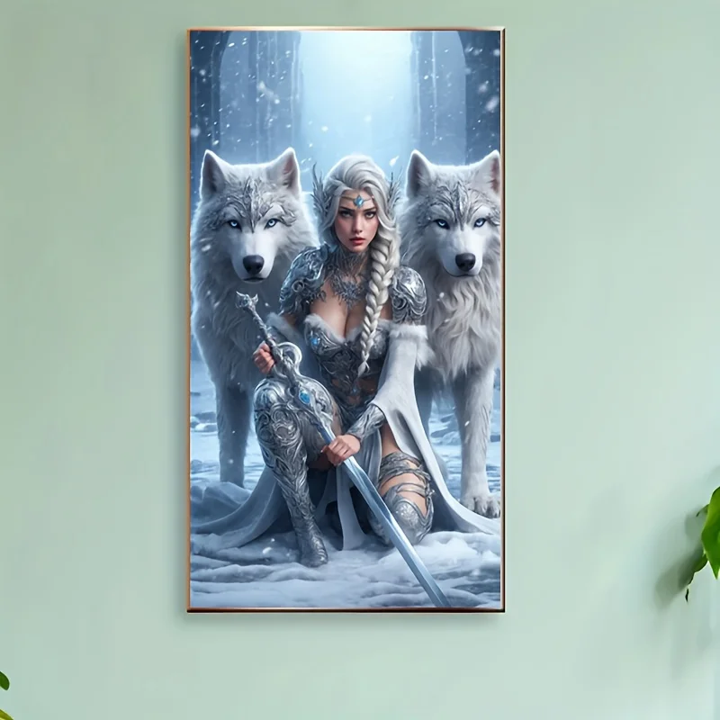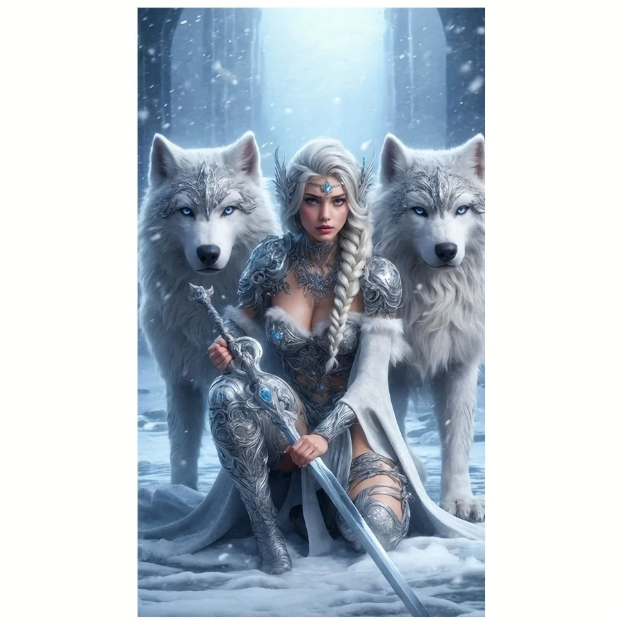 1 stuk 5D Diamond Painting Kit "Beauty and Wolf" - Volledige ronde diamantkunst, fantasiethema canvas mozaïek DIY knutselwerk, woondecoratie